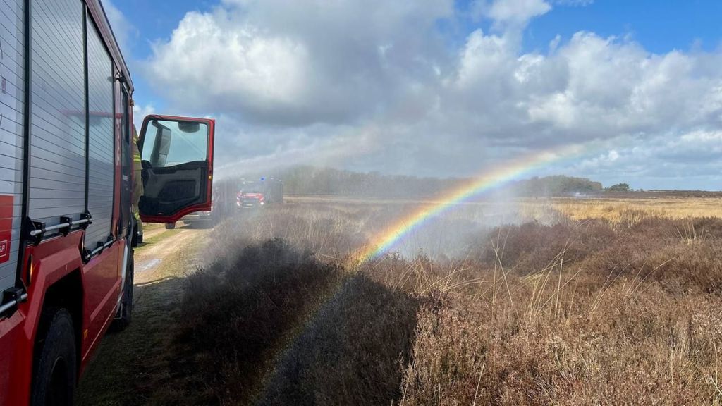 “Een fantastisch natuurgebied hier”, vervolgt van Weel, die de oefening van dichtbij volgt. “Maar de reden dat we hier zijn is natuurlijk serieuzer. Het gaat vandaag over het bestrijden van natuurbranden, en daar zien we er helaas steeds meer van.”